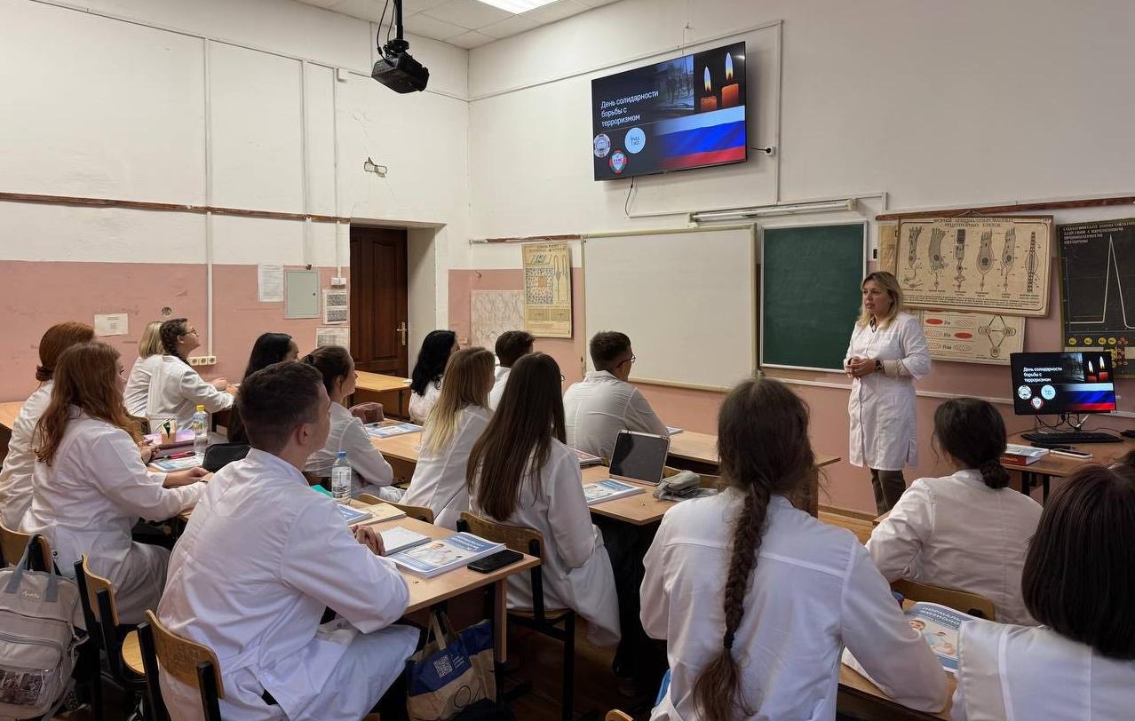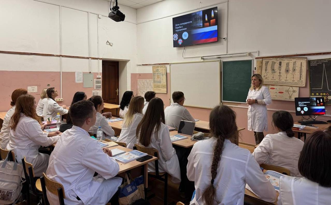 3 сентября 2025 года в Воронежском государственном медицинском университете имени Н.Н. Бурденко состоялись тематические воспитательные мероприятия, приуроченные ко Дню солидарности в борьбе с терроризмом. В этот день кураторы курсов и учебных групп по воспитательной работе провели со студентами серию информационно-просветительских встреч, направленных на формирование у молодёжи осознанной гражданской позиции, уважения к памяти жертв террористических актов и укрепление принципов патриотизма и национального единства.